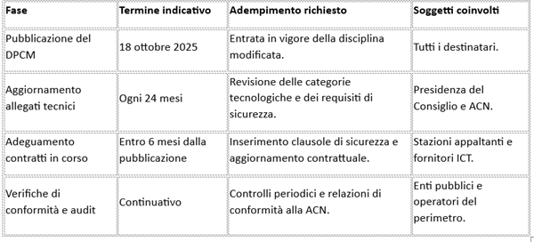 Il DPCM si applica a tutte le amministrazioni centrali e locali, estendendo il suo raggio d’azione a tutti i soggetti pubblici e privati inclusi nel perimetro di sicurezza nazionale cibernetica, istituito dal D.L. 105/2019. Le finalità comprendono la resilienza tecnologica dei sistemi pubblici e la prevenzione dei rischi legati all’uso di componenti o servizi non conformi agli standard di sicurezza europei. Il decreto mira anche a ridurre la dipendenza tecnologica da fornitori extra-UE, favorendo l’autonomia strategica dell’ecosistema digitale nazionale. Viene introdotta una logica di sicurezza degli approvvigionamenti ICT, ponendo la cybersicurezza al centro delle procedure di gara e richiedendo che le amministrazioni integrino clausole relative a integrità, disponibilità, aggiornamenti di sicurezza e gestione del rischio informatico. Un meccanismo di aggiornamento biennale degli allegati tecnici è previsto per adeguare le regole all’evoluzione tecnologica e alle nuove minacce.